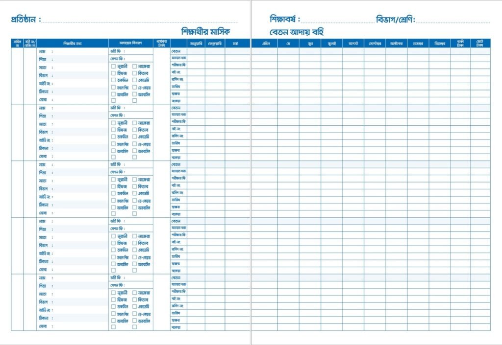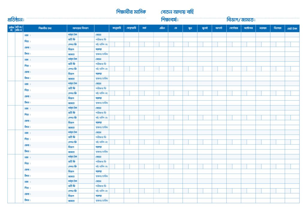 “শিক্ষার্থীর মাসিক বেতন আদায় বহি” — যা এক রেজিস্টারে সম্পূর্ণ বছরের বেতন হিসাবকে করে তুলবে সহজ, সুন্দর ও নির্ভুল।